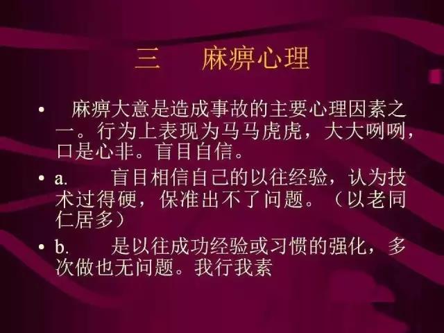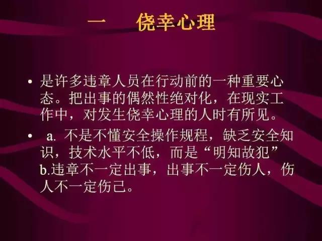 人是生產(chǎn)力中最活躍的因素,在導(dǎo)致事故發(fā)生的種種原因中,人的不安全因素是一種很重要的原因。要想搞好安全生產(chǎn),防止事故發(fā)生,必須及時(shí)矯正各種影響安全的不良心理和糾正各種違章行為。這就要求我們研究并運(yùn)用安全心理學(xué),探索人的安全心理,從而減少人的不安全因素。